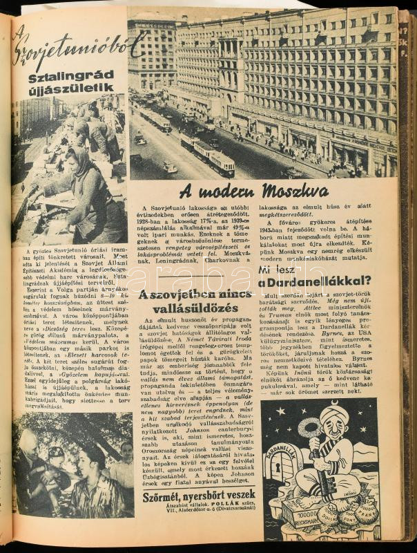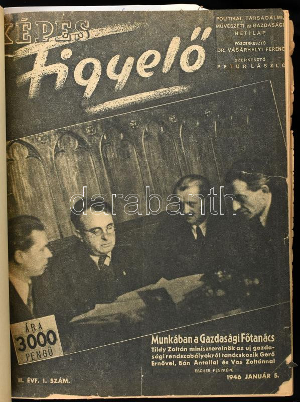 1945-1946 Képes Figyelő c. újság I-II. évfolyamának egybekötött számai... https://www.darabanth.com/de/435-Fernauktion/435.0/Kunst-Dokumente-andere-Sammelgebiete/Drucksachen~2000003/1945-1946-Kepes-Figyelo-c-ujsag-I-II-evfolyamanak-egybekotott-szamai-Egeszvaszon-kotC3~II2770168