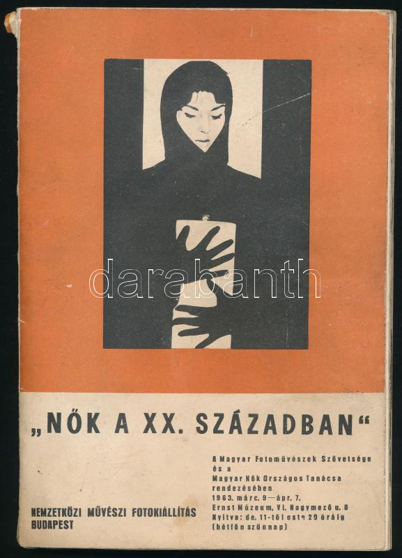 1963 Nők a XX. században, nemzetközi művészi fotókiállítás, fekete-fehér képekkel illusztrált kiállítási katalógus, kissé sérült borítóval, helyenként kissé foltos
