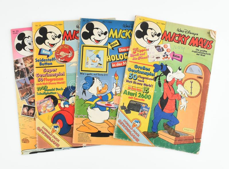 4 db Walt Disney Micky Maus (Mickey egér) német nyelvű képregényújság,... https://www.darabanth.com/de/435-Fernauktion/435.0/Kunst-Dokumente-andere-Sammelgebiete/Drucksachen~2000003/4-db-Walt-Disney-Micky-Maus-Mickey-eger-nemet-nyelvu-kepregenyujsag-vegyes-allapotban~II2821235