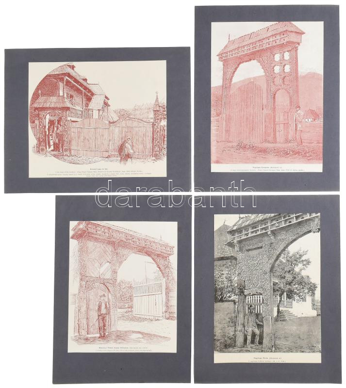 Beschreibung: cca 1900-1910 4 db Székelykaput ábrázoló nyomat, papírok, kartonlapokon, 22x18 cm, 20x23 cm, 26x19 cm, 25x18 cm