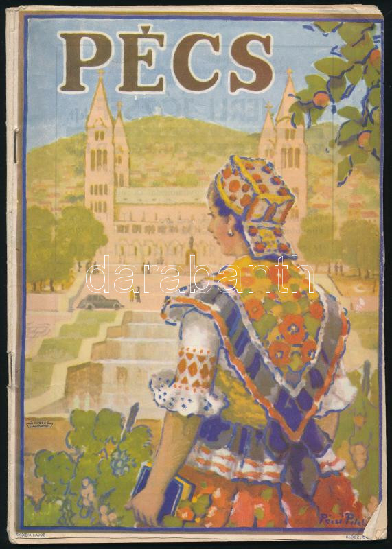 cca 1930-1940 Pécs, idegenforgalmi, turisztikai ismertető, kiadja Pécs sz. kir. város Idegenforgalmi Irodája. A borítón Pécsi Pilch Dezső (1888-1949) grafikájával. 40 p.
