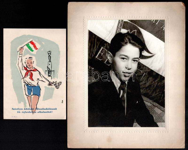 Beschreibung: cca 1960-67 úttörő tétel, össz. 6 db fotó: 3 db naptár (1960-61, 1961-62 és 1963-64), zsebkönyv 1966-67; emléklap és fotó
