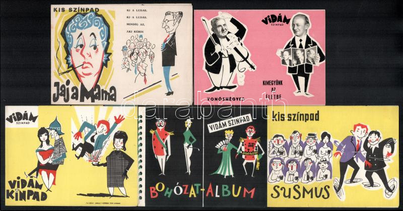 Beschreibung: cca 1962 A Vidám Színpad és a Kis Színpad 5 db műsorfüzete, szereplőosztás, szereplők karikatúrája