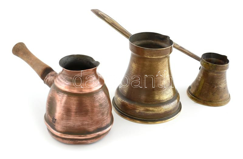 3 db réz kávékiöntő, kopásokkal és horpadásokkal, m: 6-10 cm https://www.darabanth.com/de/435-Fernauktion/435.0/Kunst-Dokumente-andere-Sammelgebiete/Flohmarkt~500013/3-db-rez-kavekionto-kopasokkal-es-horpadasokkal-m-6-10-cm~II2820760