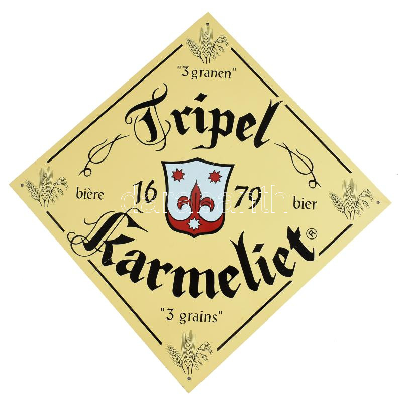 Belga sör reklámtábla, fém, Trippel Karmeliet. 56x56 cm https://www.darabanth.com/de/435-Fernauktion/435.0/Kunst-Dokumente-andere-Sammelgebiete/Flohmarkt~500013/Belga-sor-reklamtabla-fem-Trippel-Karmeliet-56x56-cm~II2821415