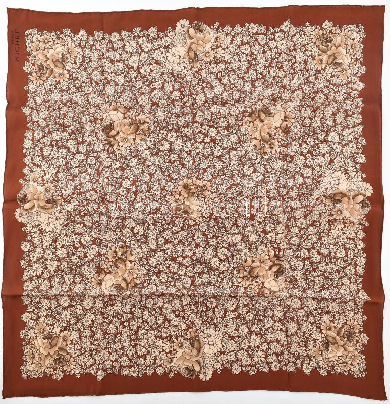 Michel Paris jelzésű barna alapon drapp-mintás kendő, 75x77 cm https://www.darabanth.com/de/435-Fernauktion/435.0/Kunst-Dokumente-andere-Sammelgebiete/Flohmarkt~500013/Michel-Paris-jelzesu-barna-alapon-drapp-mintas-kendo-75x77-cm~II2789455