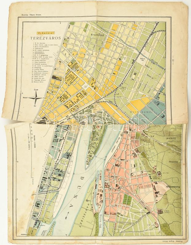 cca 1900-1910 Bp. VI kerület Terézváros térképe, 1 : 15.000, (In: Kozma: Képes Atlasz), hátoldalán fekete-fehér fotókkal, kisebb foltokkal, szakadással, 40x29 cm