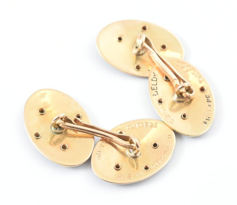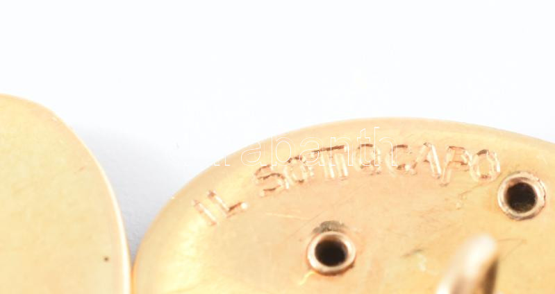 Beschreibung: Mandzsettagomb-pár, felirattal, sérült