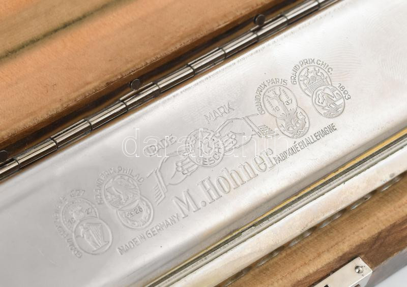 M. Hohner Chromonika III. 1937. szájharmonika. Fa tokjában18 cm