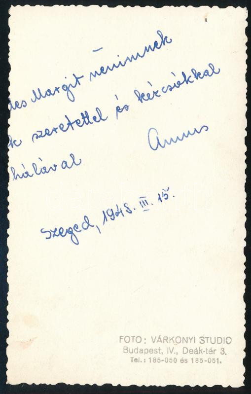 1948 Zentai Anna autográf sorai Várkonyi matricával jelzett, róla kész... https://www.darabanth.com/de/435-Fernauktion/435.0/Kunst-Dokumente-andere-Sammelgebiete/Signatur~500021/1948-Zentai-Anna-autograf-sorai-Varkonyi-matricaval-jelzett-rola-keszult-estelyi-ruhas-fotC3~II2822130
