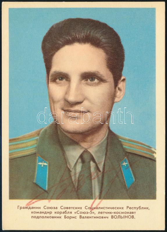Borisz Volinov (1934- ) szovjet űrhajós aláírása képeslapon / Signatur... https://www.darabanth.com/de/435-Fernauktion/435.0/Kunst-Dokumente-andere-Sammelgebiete/Signatur~500021/Borisz-Volinov-1934-szovjet-urhajos-alairasa-kepeslapon-Signature-of-Boris-Volinov-1934~II2813039