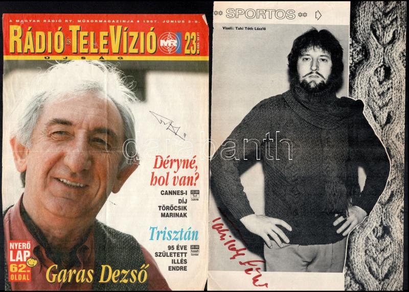 Beschreibung: Garas Dezső, Tahi Tóth László, Vogt Károly, Halász Péter aláírása újságlapokon