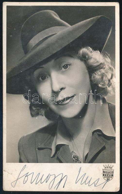 Beschreibung: Somogyi Nusi színésznő aláírása róla készült Csiszár és Sárdi fotólapon