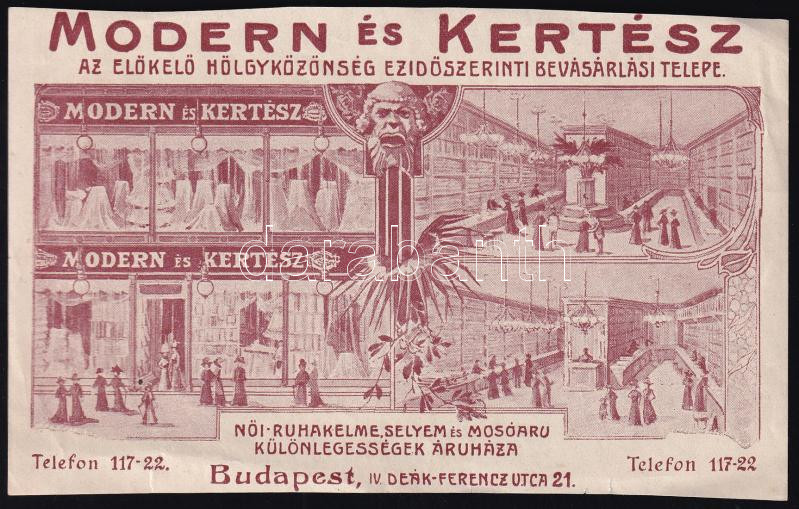 Modern és Kertész bevásárlási telepe, Bp., IV., Deák-Ferencz u. 21, sz... https://www.darabanth.com/de/435-Fernauktion/435.0/Kunst-Dokumente-andere-Sammelgebiete/Werbungen~500023/Modern-es-Kertesz-bevasarlasi-telepe-Bp-IV-Deak-Ferencz-u-21-szamolocedula-apro-la~II2816471
