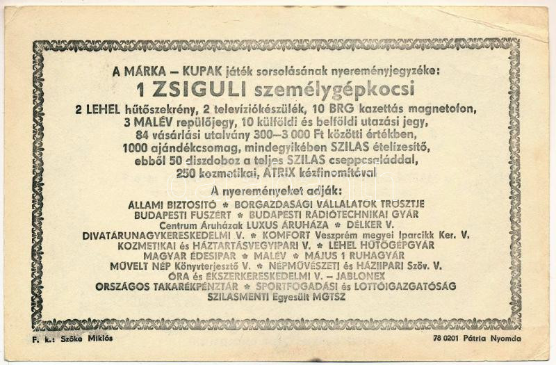 Beschreibung: 1979. "Márka Sorsjegy" II. osztályú sorsjegy T:I-