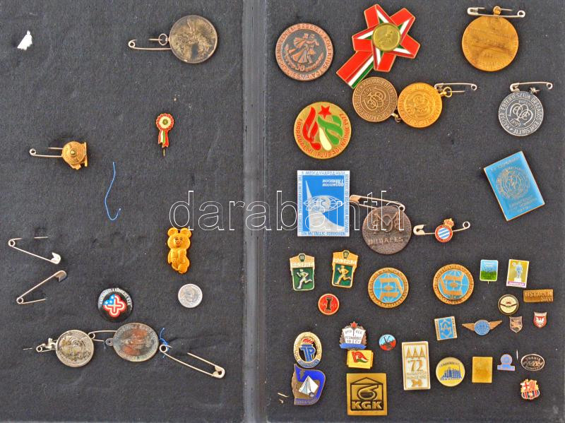 ~40 darabos vegyes jó állapotú magyar és külföldi kitűző tétel tartómappában ~40 pieces mixed hungarian and foreign pin lot in a folder