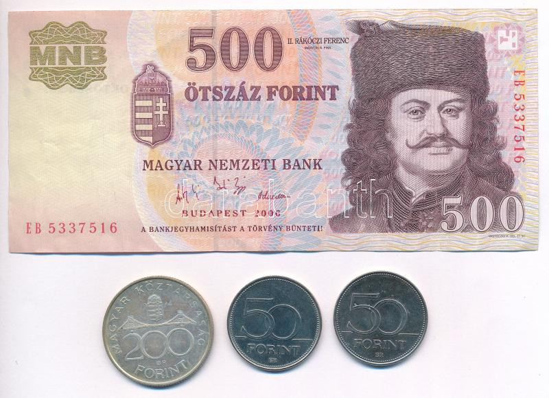 1994. 200Ft Ag "Deák" + 2005. 50Ft "15 éves a Nemzetközi Gyermekmentő Szolgálat" 2006. 50Ft "Magyar Vöröskereszt" + 500Ft "A forradalom 50. évfordulója 1956. október 23." T:1-,2, III folt