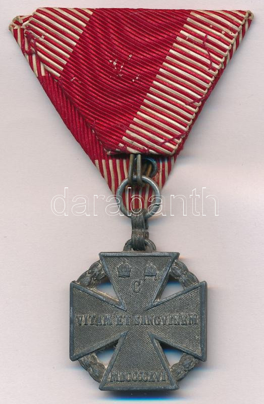 Hungary 1916. "Charles Troop Cross" Zn decoration with original ribbon C:XF oxidation NMK 295.