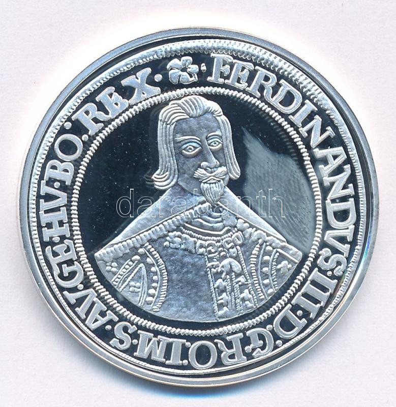 Beschreibung: DN "Magyar tallérok utánveretben - III. Ferdinánd tallérja - 1637" Ag emlékérem tanúsítvánnyal (20g/0.999/38,6mm) T:PP