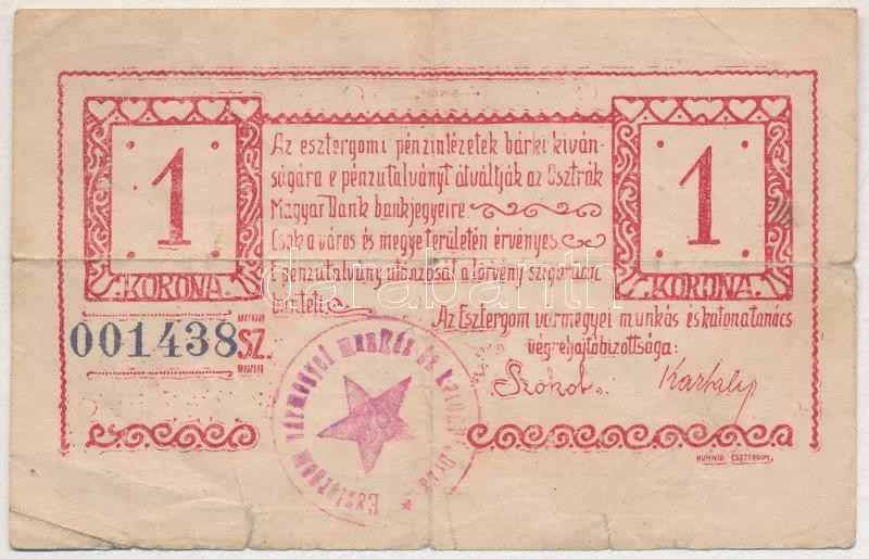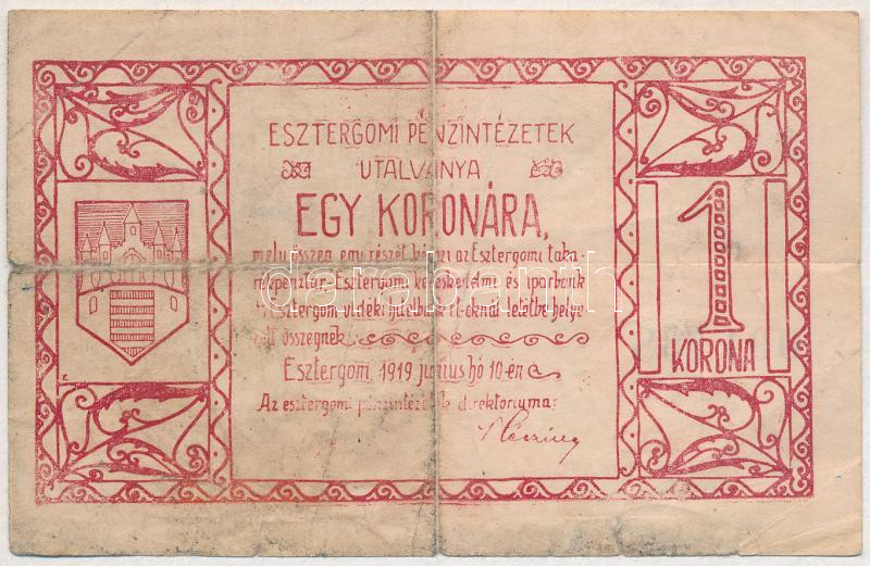 Esztergom 1919. június 10. 1K "Esztergomi Pénzintézetek Utalványa... https://www.darabanth.com/de/435-Fernauktion/435.0/Numismatik/Notgeld-aus-Papier-und-Metall~1000006/Esztergom-1919-junius-10-1K-Esztergomi-Penzintezetek-Utalvanya-TIII-Adamo-EST11~II2779229