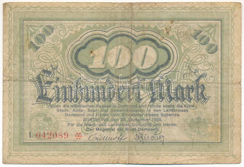 Germany / Weimar Republic / Dortmund 1922. 100 Mark necessity note / notgeld C:VG