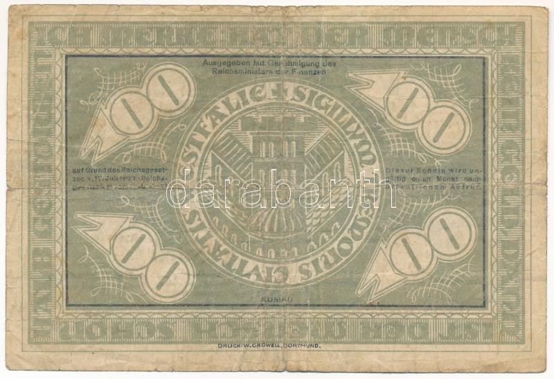 Németország / Weimari Köztársaság / Dortmund 1922. 100M szükségpénz T:... https://www.darabanth.com/de/435-Fernauktion/435.0/Numismatik/Notgeld-aus-Papier-und-Metall~1000006/Nemetorszag-Weimari-Koztarsasag-Dortmund-1922-100M-szuksegpenz-TIII--Germany-Weimar~II2820312