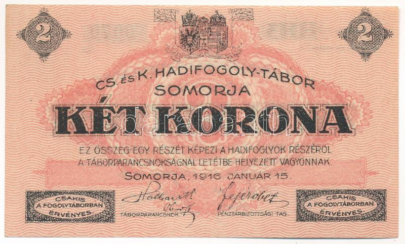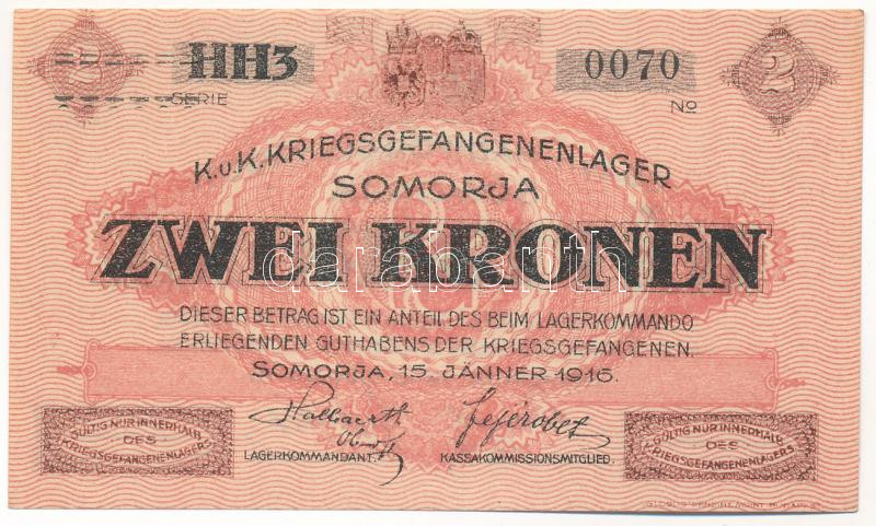 Somorja / hadifogolytábor 1916. január 15. 2K két nagybetűs és egy szám sorozat és arab sorszámmal T:I- Hungary / Somorja / POW Camp 15. 01. 1916. 2 Korona with double capital letters and one number series and arabic serial number C:AU Adamo HHS-1.5.1