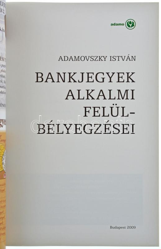 Adamovszky István: Bankjegyek alkalmi felülbélyegzései. Budapest, 2009... https://www.darabanth.com/de/435-Fernauktion/435.0/Numismatik/Numismatische-Literatur~1000002/Adamovszky-Istvan-Bankjegyek-alkalmi-felulbelyegzesei-Budapest-2009-Ujszeru-allapotban~II2820252