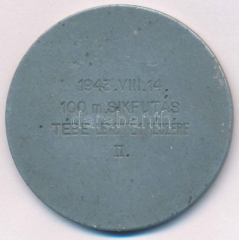 1943. "Magyar Leszámítoló és Pénzváltóbank Tisztviselőinek Sportegyesülete 1938" fém díjérem, hátoldalán "1943. VIII. 14. 100m síkfutás TÉBE leventék részére II." gravírozással (49mm) T:2