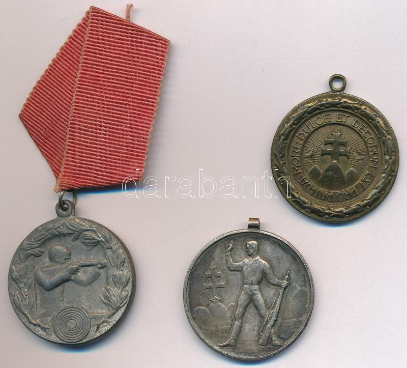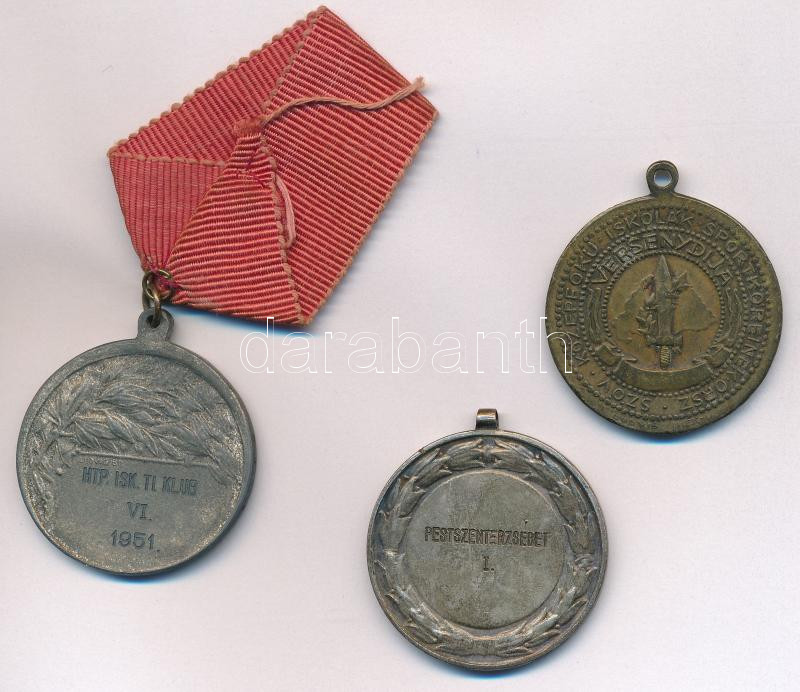 ~1940-1950. 3 darabos díjérem tétel, közte "Dulce et Decorum est Pro Patria Mori / Középfokú Iskolák Sportköreinek Országos Szövetsége Versenydíja" bronz díjérem (36mm) T:1-,2