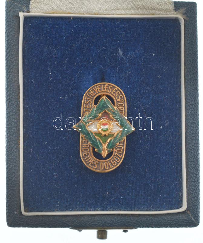 Beschreibung: ~1960. "Testnevelés és Sport Érdemes Dolgozója" aranyozott, zománcozott fém jelvény eredeti tokban T:1-