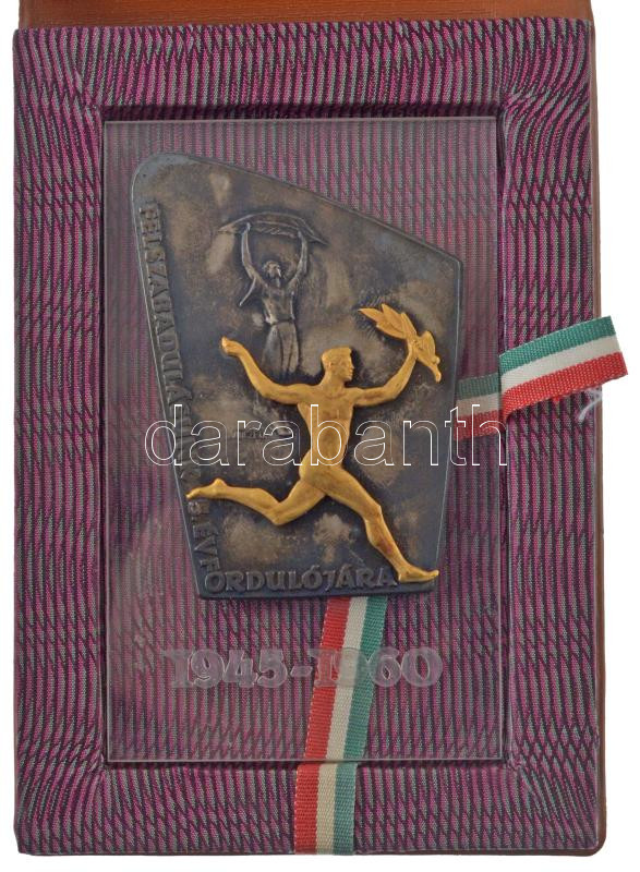 Beschreibung: Vincze Dénes (1914-1972) 1960. "Felszabadulásunk évfordulójára" ezüstözött sport emlékplakett plexi lapon, dísztokban (110x68mm)
