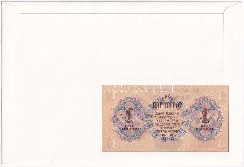Mongólia 1955. 1T felbélyegzett borítékban, bélyegzéssel T:I Mongolia ... https://www.darabanth.com/de/435-Fernauktion/435.0/Numismatik/Umschlage-mit-Munzen-und-Banknoten~1000004/Mongolia-1955-1T-felbelyegzett-boritekban-belyegzessel-TI-Mongolia-1955-1-Tugrik-in-envelo~II2811498