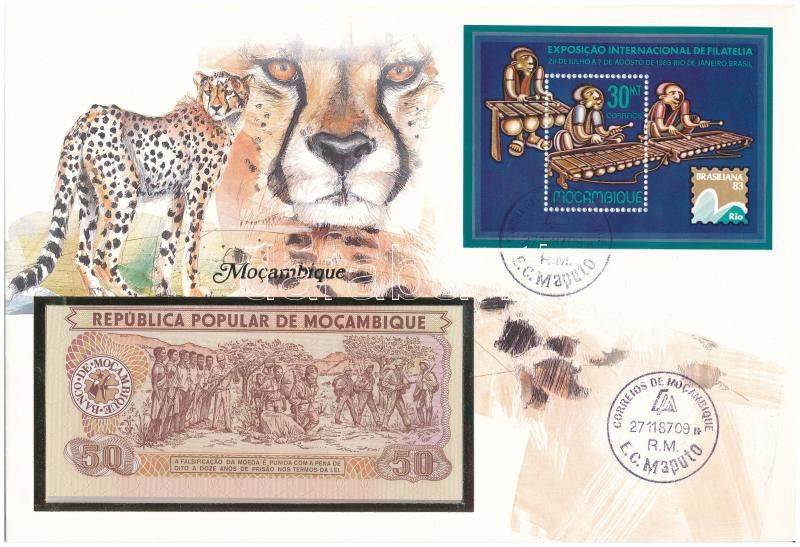 Beschreibung: Mozambik 1983. 50M felbélyegzett borítékban, bélyegzéssel T:I Mozambique 1983. 50 Meticais in envelope with stamp and cancellation C:UNC