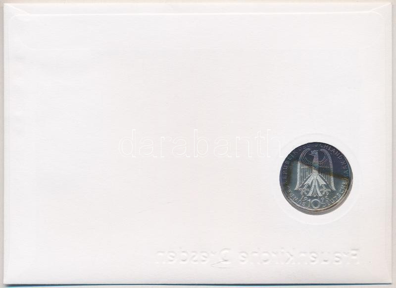 Németország 1995J 10M Ag "Frauenkirche Drezda" érmés borítékban, bélyegzéses bélyeggel, német nyelvű ismeretővel T:1 patina Germany 1995J 10 Mark Ag "Frauenkirche Dresden" in envelope with stamp and cancellaltion, information sheet in German C:UNC patina Krause KM#185
