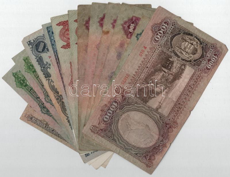 Beschreibung: 13db vegyes pengő bankjegy, közte 1930. 20P + 1943. 1000P T:III,III- közte szép papír is