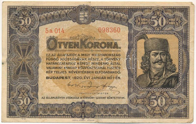 1920. 50K "5a 014 09360", "Orell Füssli Zürich" ny... https://www.darabanth.com/de/435-Fernauktion/435.0/Numismatik/Ungarische-Banknoten~1000007/1920-50K-5a-014-09360-Orell-Fussli-Zurich-nyomdahely-jelolessel-TIII-Adamo-K25~II2814777