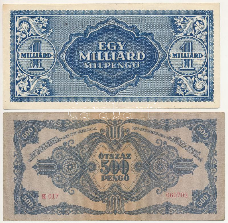 1945. 500P + 1946. 1.000.000.000P + 1946. 1.000.000.000MP + 1946. 10.0... https://www.darabanth.com/de/435-Fernauktion/435.0/Numismatik/Ungarische-Banknoten~1000007/1945-500P-plus-1946-1000000000P-plus-1946-1000000000MP-plus-1946-10000BP-plus-1946-1000000BP-mind-~II2784836