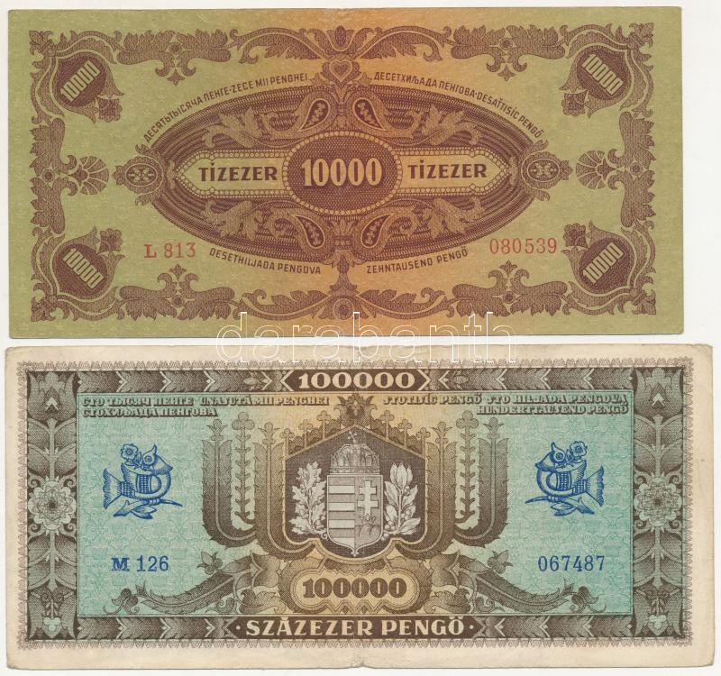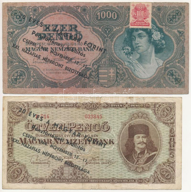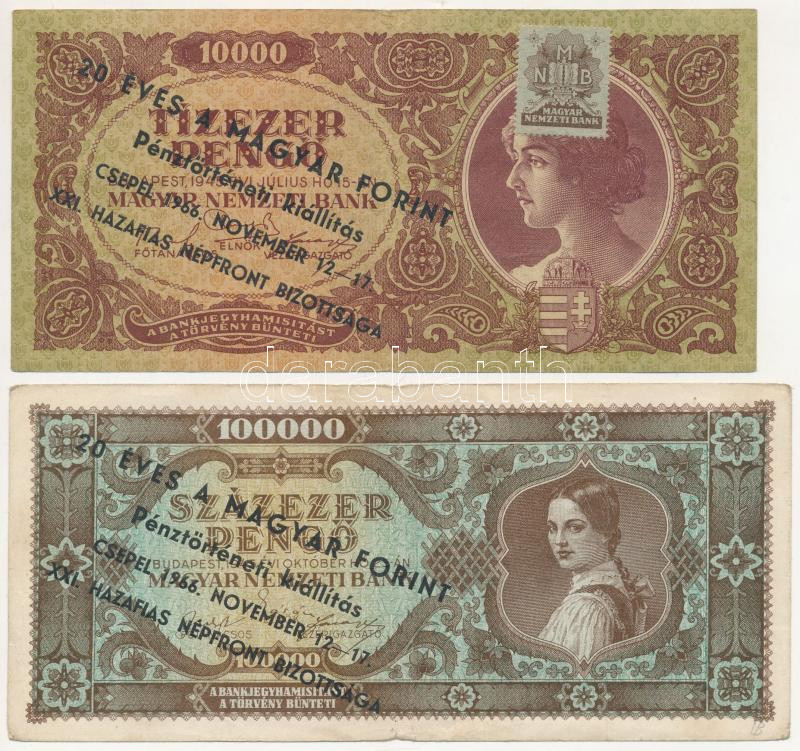 1945. 50P + 1945. 1000P + 1945. 10.000P + 1946. 100.000P mind "20... https://www.darabanth.com/de/435-Fernauktion/435.0/Numismatik/Ungarische-Banknoten~1000007/1945-50P-plus-1945-1000P-plus-1945-10000P-plus-1946-100000P-mind-20-eves-a-magyar-forint-Penztorte~II2784757
