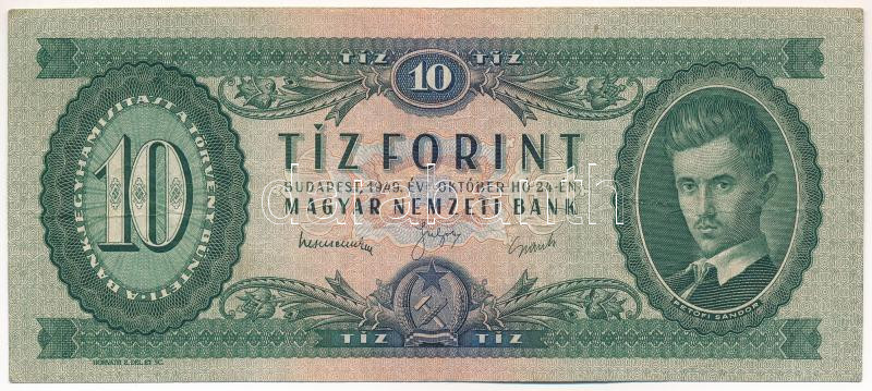 1949. 10Ft "A 175 232154" T:III Adamo F3 https://www.darabanth.com/de/435-Fernauktion/435.0/Numismatik/Ungarische-Banknoten~1000007/1949-10Ft-A-175-232154-TIII-Adamo-F3~II2816785