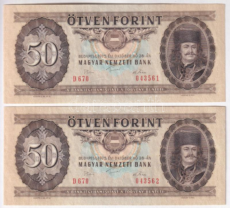 1975. 50Ft "D 670 043561, D 670 043562" sorszámkövető (2x) T... https://www.darabanth.com/de/435-Fernauktion/435.0/Numismatik/Ungarische-Banknoten~1000007/1975-50Ft-D-670-043561-D-670-043562-sorszamkoveto-2x-TI-II-hajtatlan-nyomdai-papirranc~II2822861