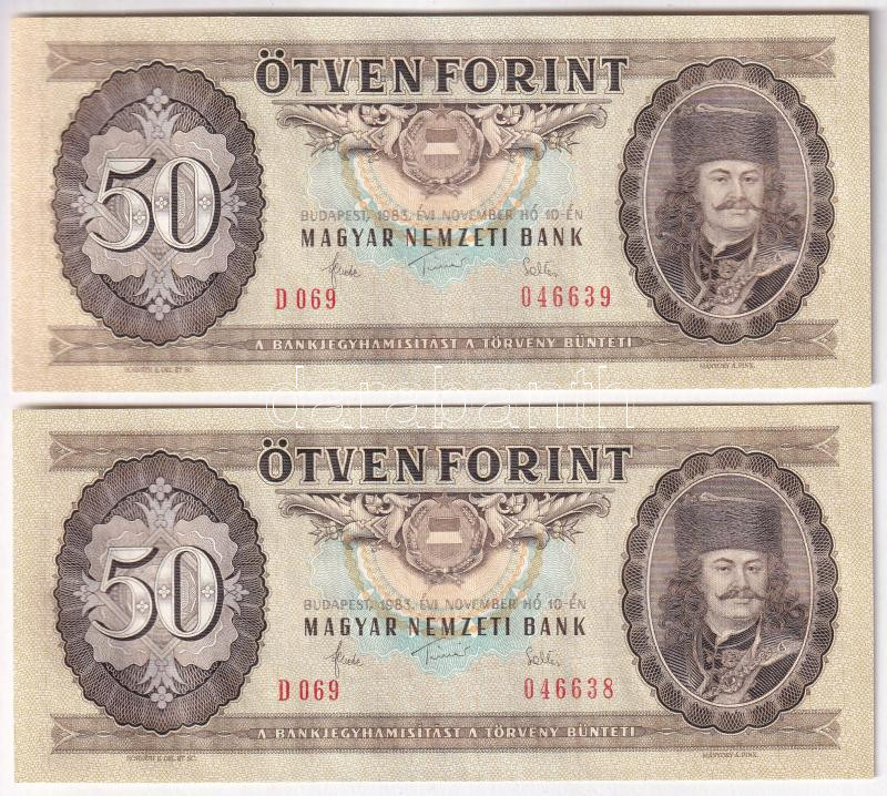 1983. 50Ft "D 069 046638, D 069 046639" sorszámkövető (2x) T... https://www.darabanth.com/de/435-Fernauktion/435.0/Numismatik/Ungarische-Banknoten~1000007/1983-50Ft-D-069-046638-D-069-046639-sorszamkoveto-2x-TI-Adamo-F21~II2822839