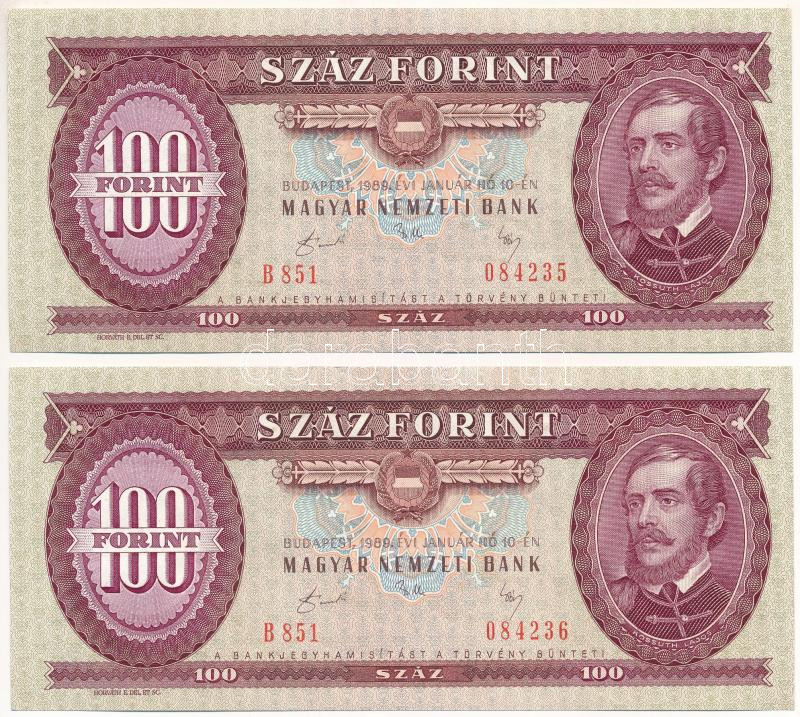 Beschreibung: 1989. 100Ft "B851 084235, B851 084236" sorszámkövető (2x) T: I Adamo F37