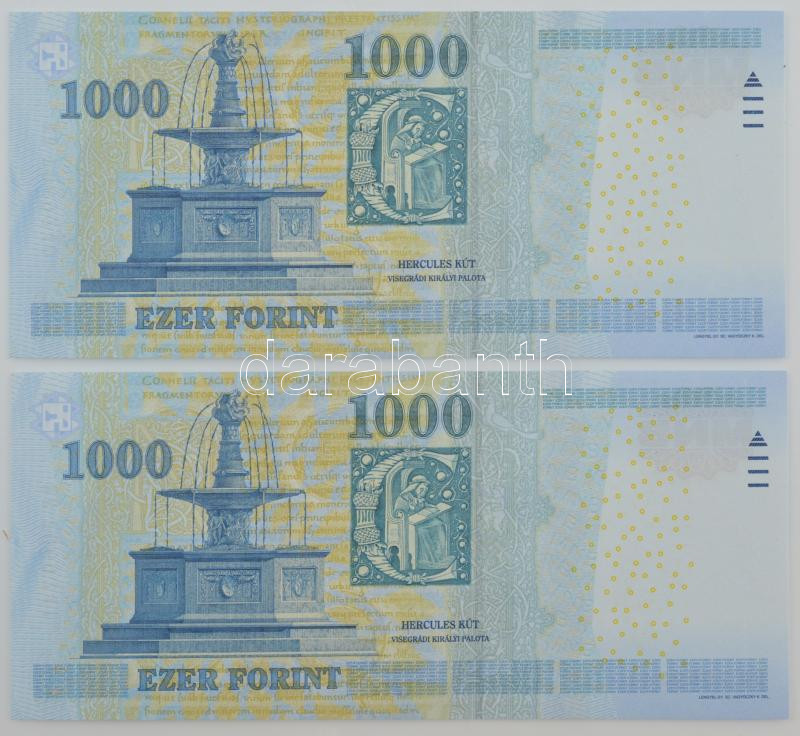 Beschreibung: 2012. 1000Ft (2x) sorszámkövetők "DB 7069240 - DB 7069241" T:I