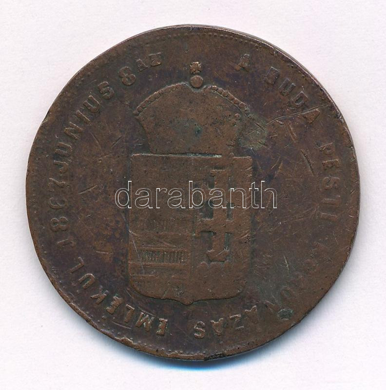 1867. "Honvéd Emlék - Az 1867. évi Honvéd Egyletek alakításának emlék zálogául / A Buda Pesti koronázás emlékül 1867 június 8-án " kétoldalas bronz emlékérem (38mm) T:3 ph, karc