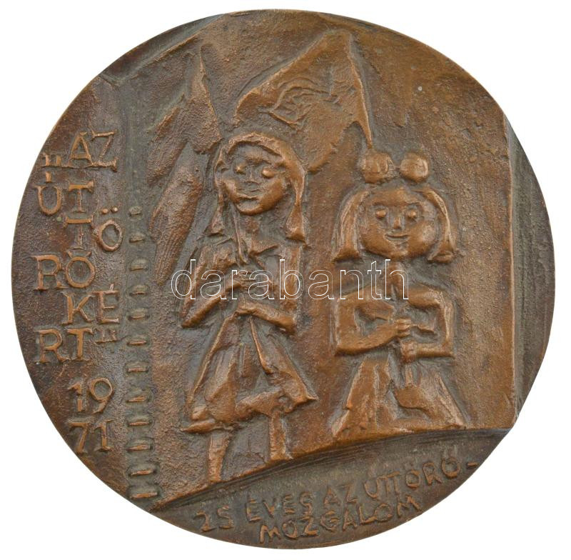 1971. "Az úttörőkért - 25 éves az Úttörő Mozgalom" egyoldalas, öntött bronz plakett (~88-89mm) T:2