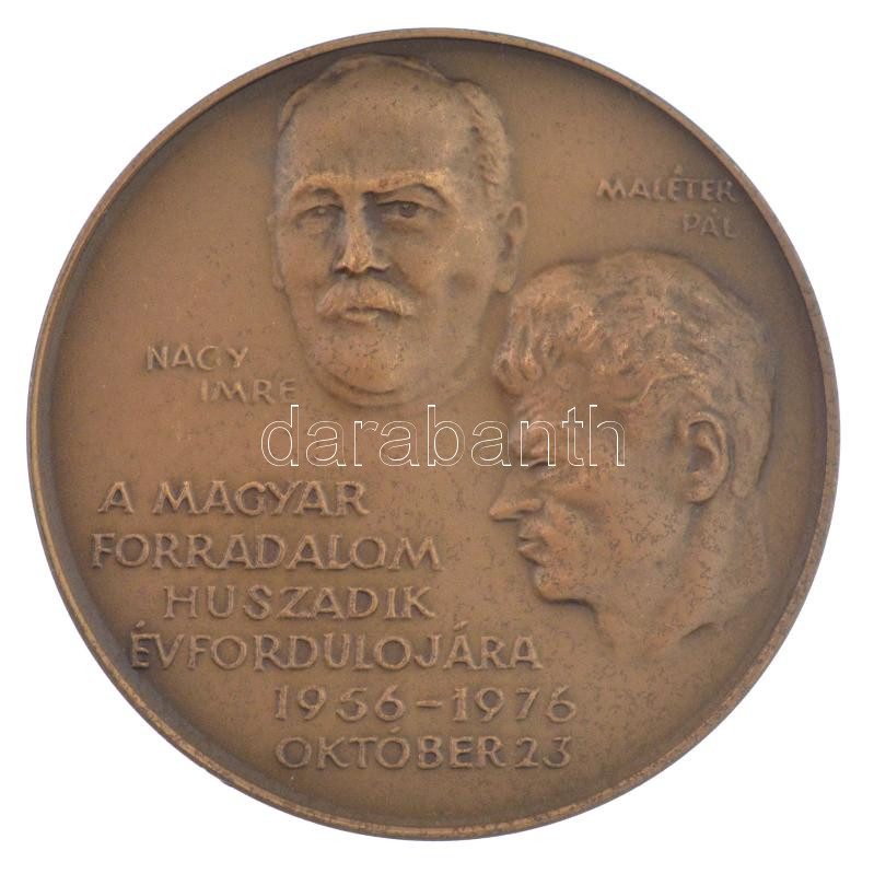1976. "A Magyar Forradalom huszadik évfordulójára - Nagy Imre, Maléter Pál / In honour to the Hungarian Revolution Oktober 23. 1956" kétoldalas bronz emlékérem (38mm) T:1-