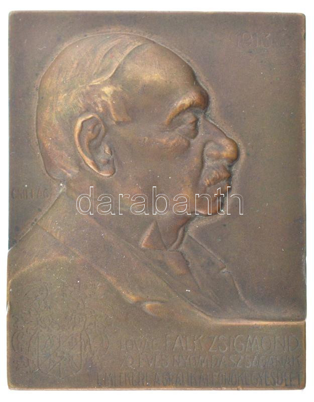 Csillag István (1881-1968) 1913. "lovag Falk Zsigmond 70 éves nyomdászságának emlékére" bronz emlékplakett (47x60mm) T:1- ph.