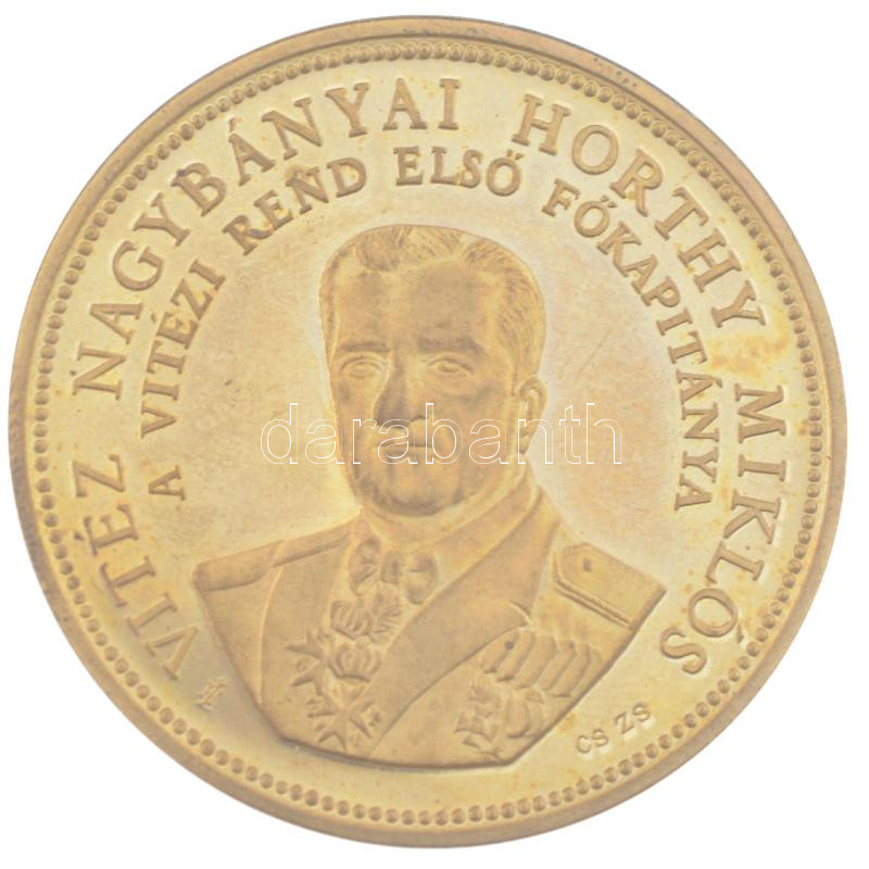 Csóka Zsuzsanna (1962-) 1995. "75 éves a Vitézi Rend / Vitéz Nagybányai Horthy Miklós a vitézi rend első főkapitánya" aranyozott fém emlékérem (42mm) T:1- (PP) patina