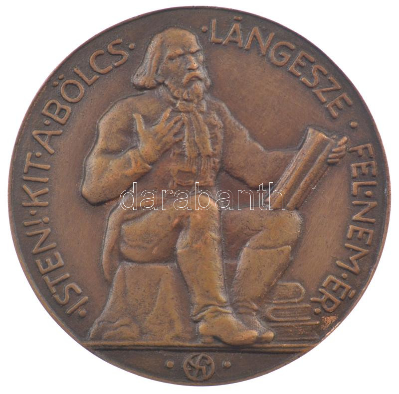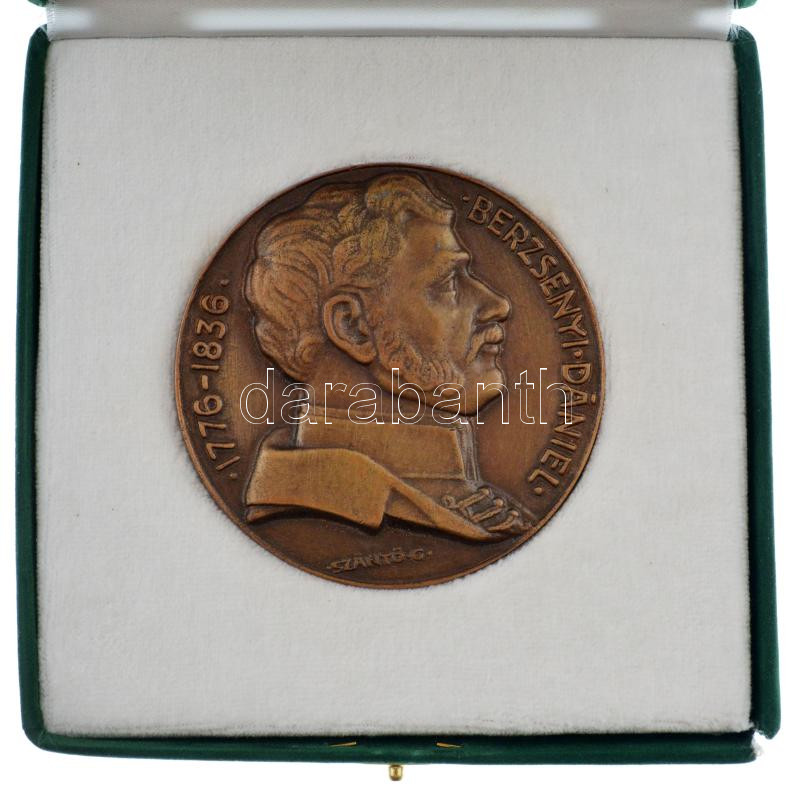 DN Szántó Gergely (1886-1962) Berzsenyi-ábrázolásának felhasználásával készült "Berzsenyi Dániel / Isten! Kit a bölcs lángesze fel nem ér" kétoldalas bronz emlékérem sérült bársonyborítású tokban (78mm) T:1-